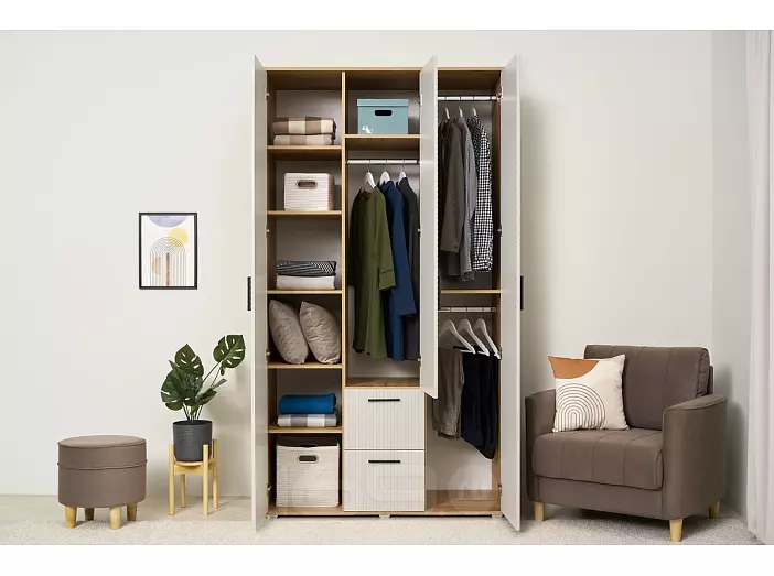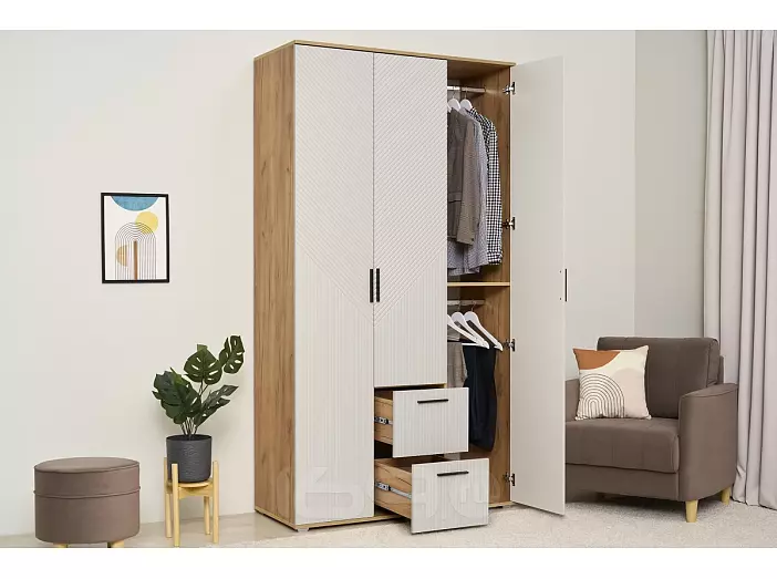 Сильвия Шкаф 3-х ств.(1200) (Браш Лайт Грей, Дуб Крафт)