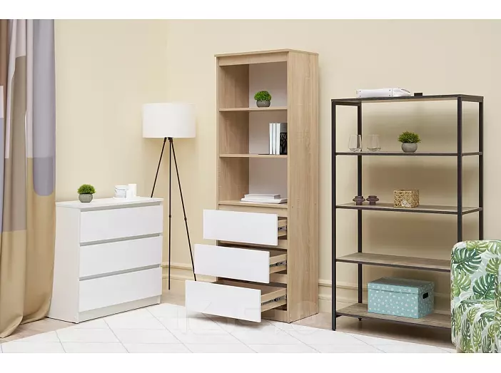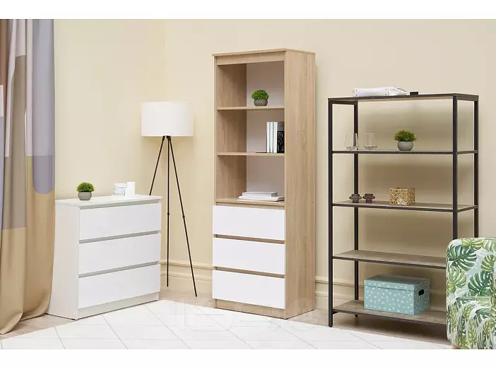 Челси Стеллаж (Ш) (Белый глянец, Дуб сонома)