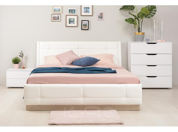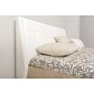 Мягкое изголовье изголовье кровати установлено с небольшим наклоном, что добавляет возможность не только лежать в кровати, но и комфортно сидеть, как на диване.