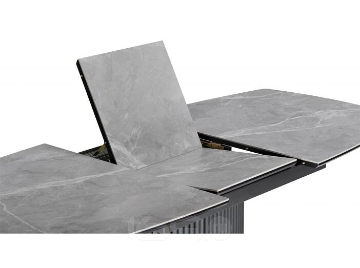 Керамический стол Фестер 160 (205) х 90 серый мрамор / пленка черная / ноги черные