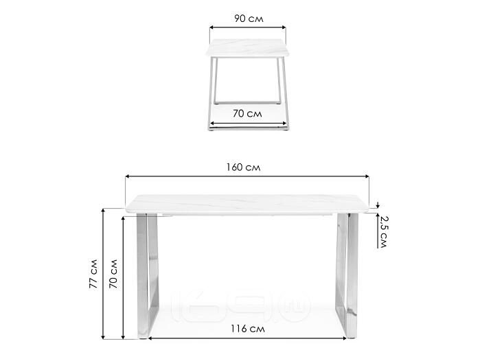 Керамический стол Селена 2 160х90х77 белый мрамор / золото