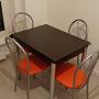 Это то, о чем принято говорить “просто и со вкусом”. Вкус у дизайнера отменный: простой прямоугольник, имитирующий срез натурального дерева и четыре лаконичные цилиндрические ножки с хромированным блеском идеально сочетаются. Чистота пропорций и качество исполнения создают законченный образ и удобную комфортабельную мебель, для которой можно найти место даже в тесном помещении. Скругленные углы удачно гармонируют со всей конструкцией. Конструкторское решение также интересно: выдвижной механизм боковых частей позволяет увеличивать столешницу. на три размера.