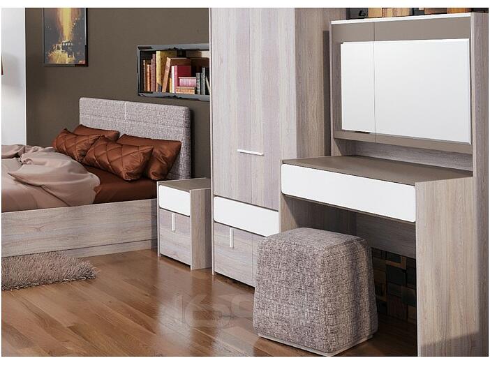 В туалетном столе Элен предусмотрено поворотное зеркало, за которым расположены полочки для парфюмерии и косметики.