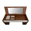 Откидная крышка столика оборудована широким встроенным зеркалом и вкладным ящиком с функциональными отсеками для косметики, украшений и кремов. Вы всегда сможете закрыть крышку стола, тем самым защитите зеркало и вещи от пыли. Благодаря достаточному углублению отсеков, все останется на месте и не скатится со стола. Края изделия скруглены для дополнительной безопасности.