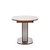 Недорогой обеденный раздвижной стол Leset Меган – прекрасное функциональное решение для классических кухонь и гостиных. Скругленные углы дают больше простора для маневров. В разложенном виде вмещает до 6-8 человек и является отличным решением для квартир небольших площадей. Дополнительная вставка в цвет стола компактно сложена в подстолье и формирует целостный образ изделия.