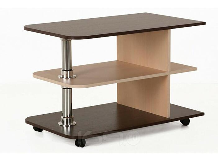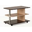 Журнальный столик Диско незаменим в случае визита гостей, для легкого завтрака или чаепития. Мобильная модель с прямоугольной скругленной столешницей и открытыми полками на хромированных опорах с легкостью разместит напитки, журналы, газеты и многое другое. Визуально легкий и компактный, столик выполнен в теплых тонах под массив дерева и поможет создать по-домашнему уютную атмосферу.