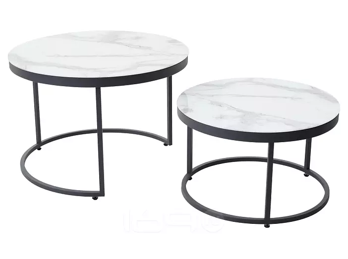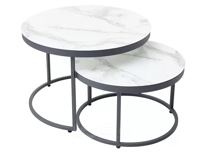 Журнальный столик Эрвин (комплект) Белый мрамор, стекло/ каркас графит, M-city