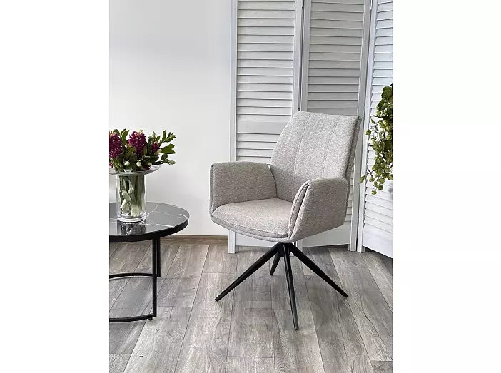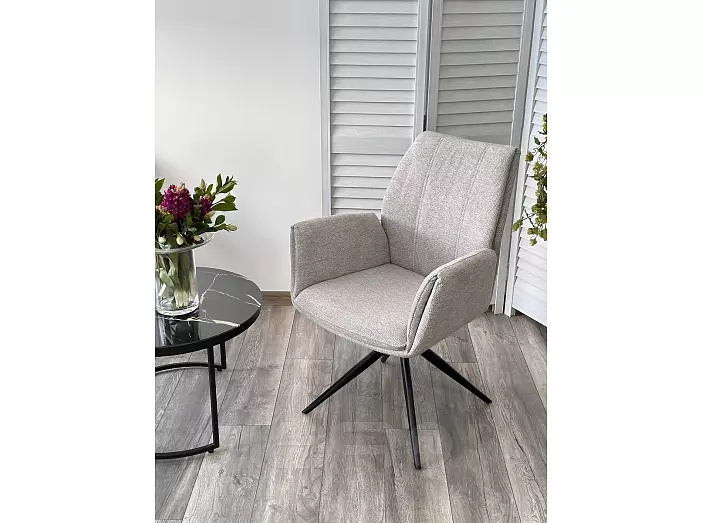 Стул YOZEF 360 град. поворот. KN01-04 Светло-серый, ткань / Черный, ®DISAUR