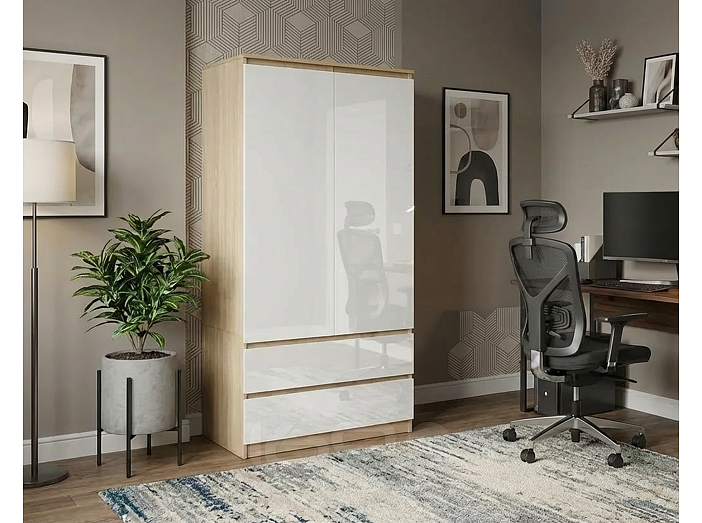 Челси Шкаф 2-х ств (2УПК) комбинированный (Ш) (Белый глянец холодный, дуб сонома)