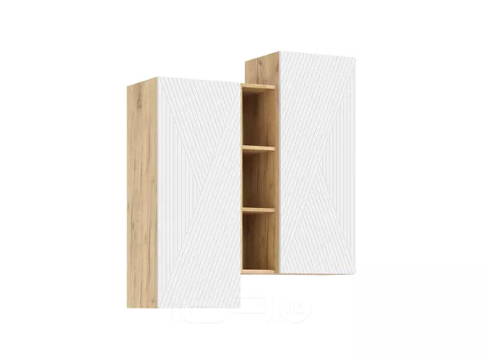 Флэш Шкаф подвесной комбинированный (Браш Вайт, Дуб Крафт)