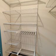 Сетчатые полки, выдерживающие нагрузку до 50 кг позволят вам размещать на них почти неограниченное количество одежды.