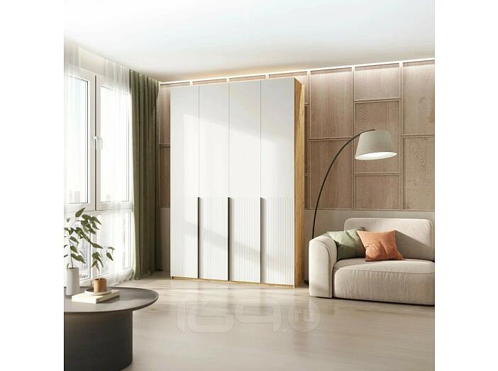 Марвэл Шкаф 4-х ств. (1600) с доп.ящиками (Браш Вайт, Дуб Крафт)