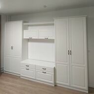 Распашные двери - стандартная конструкция для шкафа. Состоит из полотна и крепежных деталей, с помощью которых монтируется на боковую стенку шкафа. В качестве крепежа используют металлические мебельные петли. Как правило, количество дверных полотен соответствует количеству секций шкафа.