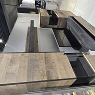 Металлические стойки с регулируемыми опорами делают эту мебель надёжной, аутентичной и функциональной.