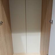 Распашные двери - стандартная конструкция для шкафа. Состоит из полотна и крепежных деталей, с помощью которых монтируется на боковую стенку шкафа. В качестве крепежа используют металлические мебельные петли. Как правило, количество дверных полотен соответствует количеству секций шкафа.