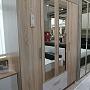 Вместительный шкаф Сопрано состоит из четырех створок, двух ящиков и зеркал. В одной из секций есть 4 полки для мелких вещей, во второй – небольшой отсек полочками и штангой. Центральная часть предназначена для длинной одежды. Шкаф Сопрано собрали из качественных плит ЛДСП. Механизм выдвижения ящиков – ролики. На дверцах расположили удобные ручки-скобы. Модель сделали в двух вариантах цвета. Любителям современного минимализма понравится глянцевый белый, поклонникам классики – Дуб Сонома.
