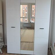 Распашные двери - стандартная конструкция для шкафа. Состоит из полотна и крепежных деталей, с помощью которых монтируется на боковую стенку шкафа. В качестве крепежа используют металлические мебельные петли. Как правило, количество дверных полотен соответствует количеству секций шкафа.