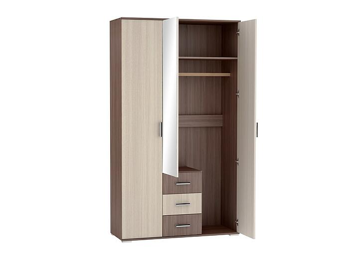 Шкаф трехстворчатый Рошель ШК-813 с ящиками ЛДСП Ясень шимо темный/светлый