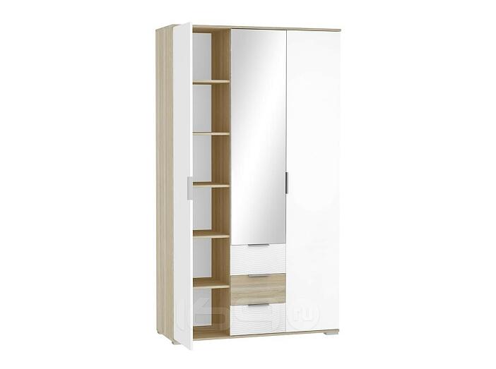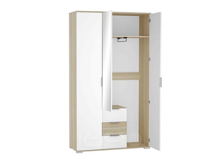Шкаф трехстворчатый Терра ШК-823 с ящиками МДФ Белый глянец/Дуб сонома