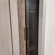 Шкаф со створкой из тонированного стекла является современным и оригинальным решением.