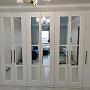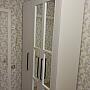 Нестандартно и интересно решён декор двустворчатого шкафа. Зеркало накладывается изнутри фасада, проявляя таким образом сквозную ажурную фрезеровку.