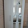 Фасады выполнены из МДФ с матовой ПВХ-плёнкой. Такое решение делает мебель визуально более "мягкой", комфортной и расслабляющей, что особенно актуально для спальни.