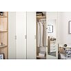 Казалось бы, заурядный внешний вид, но скрывающий большой потенциал. На одном из распашных фасадов установлены особые петли, которые позволяют сделать открытие фасада на 165 градусов, где было спрятано большое и удобное зеркало.