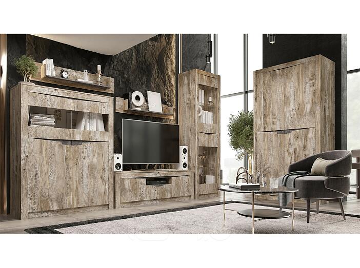 Шкаф 640x442x2200 Ривьера Дуб Юкон, Бетон темный ЛДСП, стекло