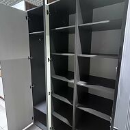Распашные двери - стандартная конструкция для шкафа. Состоит из полотна и крепежных деталей, с помощью которых монтируется на боковую стенку шкафа. В качестве крепежа используют металлические мебельные петли. Как правило, количество дверных полотен соответствует количеству секций шкафа.