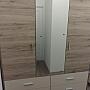 Корпус спальни изготовлен из 16 мм ламинированной древесностружечной плиты цвет –«Дуб Санремо» и «Крем Бежевый». Торцевые поверхности корпуса закромлены кромками ПВХ и ABS. Фасады изготовлены из 16 мм ламинированной древесностружечной плиты цвет –«Дуб Санремо» и «Крем Бежевый». По периметру фасады закромлены кромками ПВХ и ABS. Детали, изготовленные из древесностружечной плиты цвет – «Крем Бежевый», обработаны на лаконаливных машинах имеют высоко глянцевую поверхность .