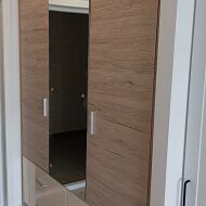 Распашные двери - стандартная конструкция для шкафа. Состоит из полотна и крепежных деталей, с помощью которых монтируется на боковую стенку шкафа. В качестве крепежа используют металлические мебельные петли. Как правило, количество дверных полотен соответствует количеству секций шкафа.