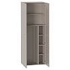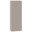 Шкаф двухдверный выполнен из ЛДСП цвета Капучино и имеет 2 вместительных полки в верхней части шкафа, 4 полки в правой части, и штангу для одежды на плечиках - в левой. Ручки в форме скобы выполнены из белого матового металла. Все петли - плавного закрывания.