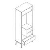 Шкаф с вкладными боками соединенные полкой, разделен на два отделения: верхнее закрыто двумя дверями, за которыми располагается штанга, внизу расположен ящик на шариковых направляющих.