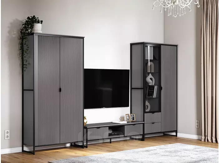 Коллекцию модульной гостиной "Нора" отличает современный оригинальный стиль. Декоративная продольная фрезеровка на фасадах из МДФ и опоры на металлокаркасе соответствуют модным тенденциям этого года в ведущих зарубежных коллекциях.
