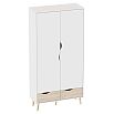 Шкаф двухстворчатый «Соната» с непроходными стенками будет одинаково гармонично смотреться как в составе мебельной композиции, так и установленный отдельно. В верхней секции находятся две стационарные полки со штангой для одежды. Нижняя секция оборудована двумя выдвижными ящиками с фасадами, декорированными прорезными ручками, в которых можно хранить предметы, имеющие более утилитарное назначение.