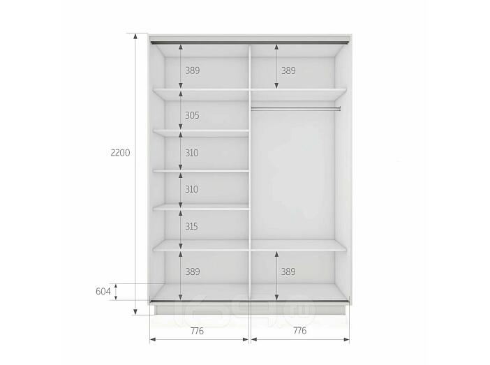 Шкаф-купе 1600x600x2200 Экспресс 2 Белый снег зеркало, ЛДСП