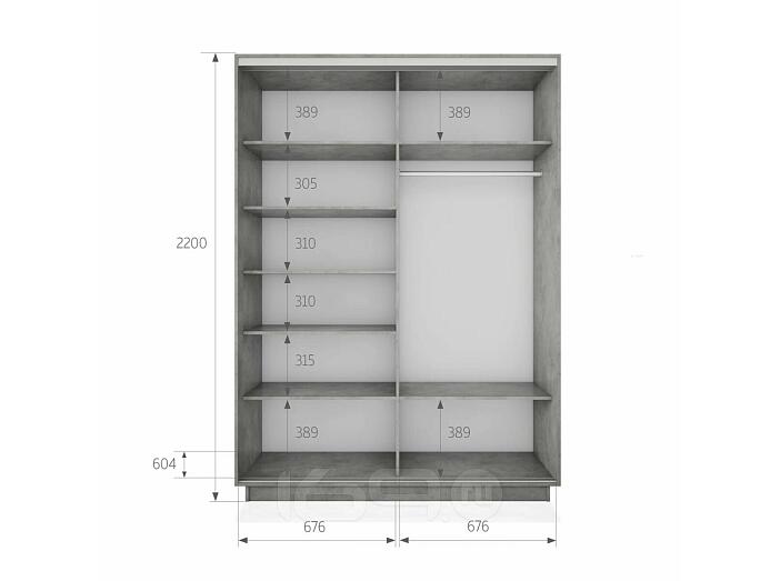Шкаф-купе 1400x600x2200 Экспресс 2 Бетон зеркало, ЛДСП