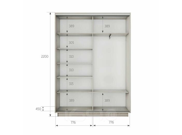 Шкаф-купе 1600x450x2200 Экспресс 2 Ясень Анкор светлый зеркало, ЛДСП