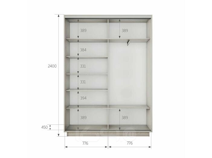 Шкаф-купе 1600x450x2400 Экспресс 2 Ясень Анкор светлый зеркало, ЛДСП