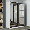Шкаф Экспресс 2 2-х дверный Дуо Зеркало (Чёрный профиль) Белый снег 1400x2400x600