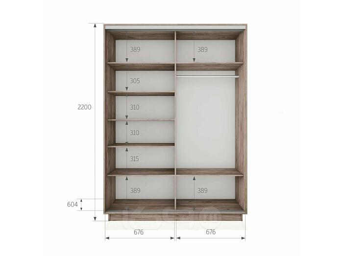 Шкаф-купе 1400x600x2200 Экспресс 2 Дуб Крафт табачный зеркало, ЛДСП