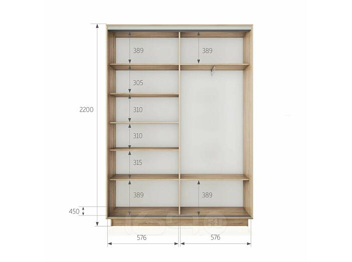 Шкаф-купе 1200x450x2200 Экспресс 2 Дуб сонома зеркало, ЛДСП