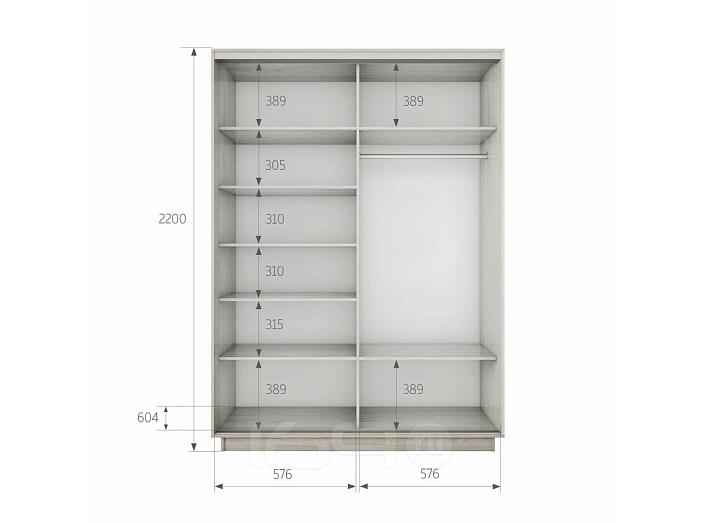 Шкаф Экспресс 2 2-х дверный Дуо Зеркало ЛДСП (Белый профиль) Ясень Анкор светлый 1200x2200x600