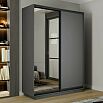 Шкаф Экспресс 2 2-х дверный Дуо Зеркало ЛДСП (Чёрный профиль) Серый Диамант 1600x2200x600