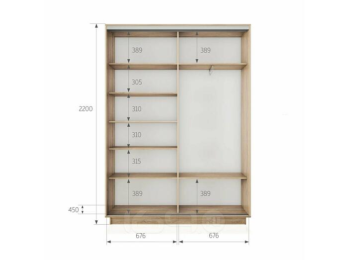 Шкаф-купе 1400x450x2200 Экспресс 2 Дуб сонома зеркало, ЛДСП