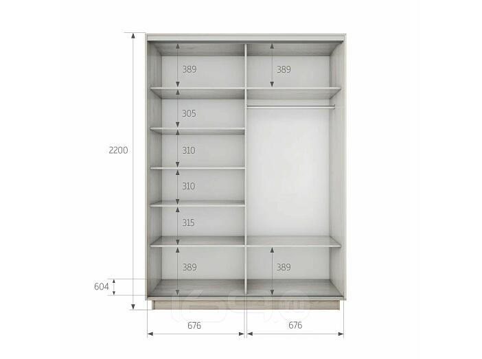 Шкаф-купе 1400x600x2200 Экспресс 2 Ясень Анкор светлый зеркало, ЛДСП