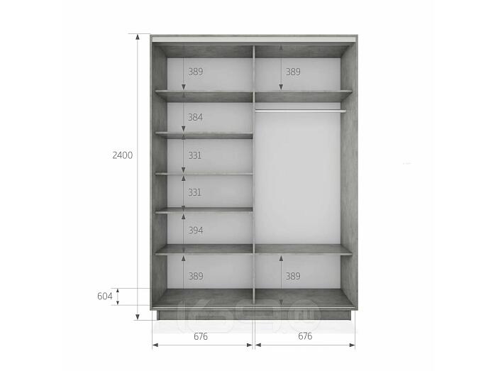 Шкаф Экспресс 2 2-х дверный Дуо Зеркало (Серебряный профиль) Бетон 1400x2400x600