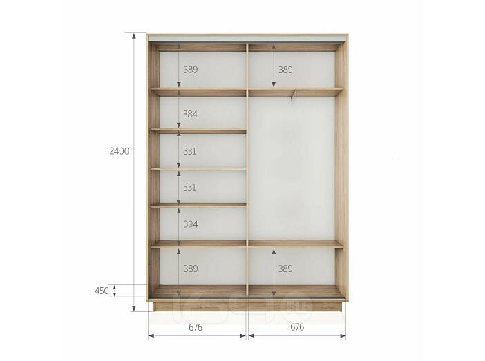 Шкаф Экспресс 2 2-х дверный Дуо Зеркало (Серебряный профиль) Дуб Сонома 1400x2400x450