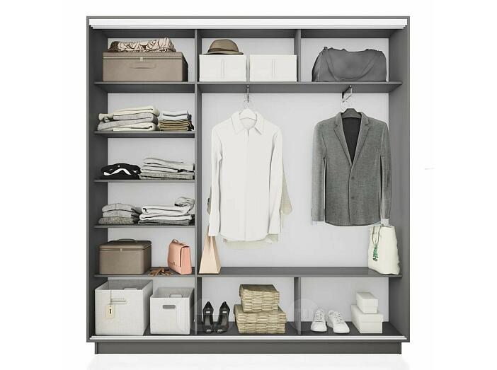 Шкаф Экспресс 2 3-х дверный Трио ЛДСП Зеркало ЛДСП (Белый профиль) Серый Диамант 2400x2200x450