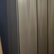 Раздвижные двери – двери с системой открывания купе. Она состоит из дверных полотен, направляющих, роликовых механизмов и ограничителей. Открывание и закрытие дверей происходит путем перемещения полотен по нижней и верхней направляющей, при этом одно из полотен заезжает за другое.